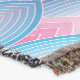 A quality printed throw has its advantages. This is a much finer weave throw than its loopier cousins, and though lighter, it is worth the investment for custom room accessorizing. The back is much prettier than the typical brown, and the fringe on the long sides very vivid, the selvage nicely done. Before photographing, I washed the throw in cold water, delicate, with a thicker woven throw the same size. On tumble dry low, this throw was dry in half the time as the other. This is a very practical quality if you use throws for furniture covers or to wrap up in frequently. The sleekness of the fabric makes it a great layer for accenting or protecting without the feeling of sitting on too much stuff. Perfect for napping or when you feel a light chill coming on. The color printing is beautiful and on this fabric, matched the design and color of my Photoshop image. This is an advantage for blending room fabrics and colors. The fringe on the short sides prints the colors from the design image and therefore varies from the side fringe. I streaked a white fractal line through the plaid pattern to give the illusion of weaving. This printed as crisp as an illusory thread, and put some white in the short side fringe, showing another advantage of print vs loomed- for artistic purposes, line lines, detail, and color integrity can be planned and preserved. My loomed throws have color limitations and more of a needlepoint texture. Print throws reproduce an exact image. The throw felt a little stiff straight out of the package, but this went away in the first delicate wash. Of course I searched the wash water for ink or bleeding and there was none.
