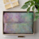 Teal Blue and Purple Abstract Peacock Colours Decoupage Tissue Paper with gold script writing