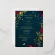 Add a refined touch to your wedding stationery with this elegant floral enclosure card, designed to complement our rich jewel tone invitation suite. Featuring dramatic red, teal, and gold tones on a deep teal background, this card is beautifully accented with metallic gold foil details that shimmer with sophistication. Ideal for providing your guests with important information—such as reception details, accommodations, dress code, or wedding weekend events—this insert is as functional as it is stylish.