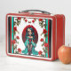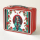 Teal and Red Roses Sugar Skulls Metal Lunch Box