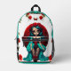 Teal and Red Roses Sugar Skulls Printed Backpack