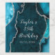 Teal and Silver Agate Marble Birthday Wine Label