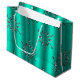 An elegant, luxurious, teal and silver Christmas gift bag with a metallic gold Christmas star pattern (or snowflakes) on a pretty teal background to add a festive and luxurious touch to your Christmas gift-giving this year.