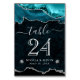 Teal and Silver Faux Glitter Agate Wedding Table Number