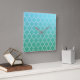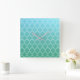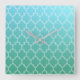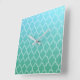 Teal and White Abstract Geometric Pattern Square Wall Clock