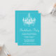 Chic aqua blue bachelorette party invitations. Design features a modern white chandelier on a teal blue background. Illustration by Mujka Design