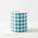 This coffee mug features teal (aqua blue) and white squares in an old fashioned gingham checked pattern. Personalise this mug with your name or other custom text or enjoy it as is.