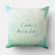 Pretty dandelion fluff 'I wish...And so it is ...' quote throw cushion. Theme - blue green nature plants natural positivity affirmation statement