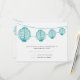 This beautiful wedding invitation features the image of Japanese lanterns hanging across the top in teal blue and white colours. Look for matching Invitations in my shop!