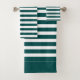Update your bathroom with this stylish dark teal and white striped bath towel set.
