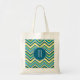 Teal and Yellow Colourful Chevron Pattern Monogram Tote Bag