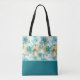 Teal and Yellow Flowers Alcohol Ink Colour Block Tote Bag