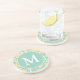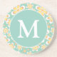 Teal and Yellow Spring Flower Pattern Monogram Coaster