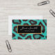 Teal Animal Skin, Leopard, Faux Gold Foil, with a gold and black label, two-sided business card.