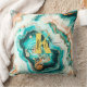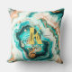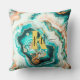 Teal Aqua Agate Golden Custom Modern Monogram Cushion
