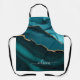 Teal Aqua Blue Green Agate Geode Gold Monogram Apron