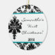 Teal Aqua Damask Lace Personalised Name Ornament