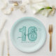 Celebrate a special milestone with these elegant teal aqua glitter script Sweet 16 birthday paper plates. Featuring a stylish design with a shimmering teal number "16" and customisable script name, these plates add a touch of glamour to any sweet sixteen party. Perfect for serving cake, snacks, and party treats, these personalised plates are both functional and decorative, making them a memorable addition to your event.