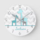 Teal Aqua Gray Giraffe Nursery Wall Clock