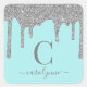 Teal Aqua Silver Sparkle Glitter Drips Monogram Square Sticker