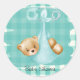 Teal Aqua Teddy Bear Diaper Gingham Baby Shower Classic Round Sticker