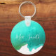 Teal Aqua watercolor cute girl gift name Key Ring