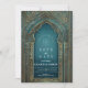 An exquisite Islamic wedding design inspired by the beauty of mosque architecture and traditional arabesque patterns. The emerald-green background and ornate gold detailing evoke luxury and devotion, making it perfect for couples celebrating their union with elegance and spiritual grace.