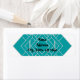 These return address labels have an art deco quilt-inspired design of diamond shapes and a rectangle, both in teal and silver.