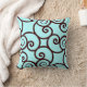 abstract swirl, teal light blue and brown chocolate pillow Design by Sandy Closs