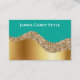 A bright teal background on top, with beautiful gold and glitter waves below create an eye-catching business card that is 100% professional. The back has a larger teal area, with minimal gold and glitter waves, giving you space for your business information. Could be used for a variety of professions, beyond beauty.