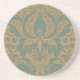 Teal Beige Damask Coaster