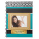 Personalised teal, black and gold graduation journal. Features a beautiful gold frame for your photo and an elegant label to personalise with your own text. Text, font, font size, colour and placement are completely customisable, so make it your own.