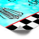 This poster is black, teal and red with the text, "Just Beat It," with a graphic of an old retro beater with chequered border.
