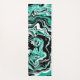 Teal, Black and White Swirls Fluid Art Yoga Mat