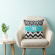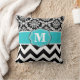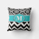 Teal Black Damask Chevron Monogram Pillow