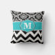Show off your personal style in a fun way with this teal and black damask and chevron print monogram pillow.