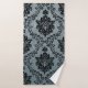 Teal black damask pattern, art nouveau pattern, vi bath towel