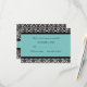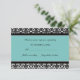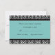 Wedding RSVP cards in elegant turquoise blue, black and white with classic floral damask pattern. Customisable with your wedding details, available in many matching wedding products.