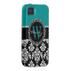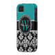 Teal, Black Damask Your Initial, Your Name Case-Mate iPhone Case