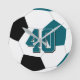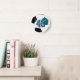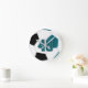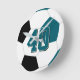Choose your own colours! This custom colours wall clock for a soccer player's sports room features the image of a simple soccer ball that has teal, black and white panels - personalise with the athlete's jersey number - to change the colours of the soccer ball's teal & black panels and the jersey number, click the "Edit this design" button (above) - by katz_d_zynes