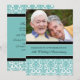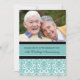 Custom photo 50th wedding anniversary party invitation card in elegant turquoise blue, black and white classic floral damask pattern, delicate and modern. Customisable with your party details and your own photo.