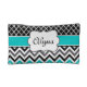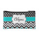 Teal Black Quatrefoil and Chevron Personalised Makeup Bag