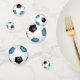 The front and back of each piece of this soccer birthday party confetti features the realistic image of a soccer ball that has teal, black and white panels - by katz_d_zynes