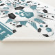 This cool girl's soccer themed Sherpa fleece blanket features an "explosion" of teal, black and white soccer balls in varying sizes and grey and teal star shapes - the teal star has a tiny pattern of white polka dots - customise with player's name and jersey number - the teal colour strip at the bottom edge is customisable - katz_d_zynes