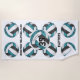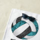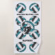 This fun volleyball themed beach towel features a pattern of teal, black and white stylised volleyballs arranged in a mirrored pattern with customisable text between the volleyballs, currently team name & mascot name - the athlete's name and jersey number can be personalised, as well as the white background colour and text colour - by katz_d_zynes