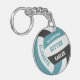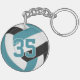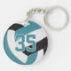 This team colours volleyball themed keychain for boys or girls features a realistic looking teal, black and white volleyball upon which you can customise the player's name, jersey number and court position, plus school or club name and mascot name in a varsity letter style font - by katz_d_zynes
