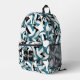 This cool volleyball backpack features a random pattern of varied size teal, black & white volleyballs turned every which way on a white background - customise with the athlete's name & jersey number - by katz_d_zynes
