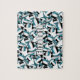 This team colours volleyball themed jigsaw puzzle features a fun 3-dimensional-look pattern of varied size teal, black and white volleyballs turned every which way - customise with the athlete's name - by katz_d_zynes