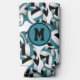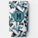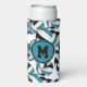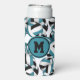Teal black volleyballs pattern w player monogram seltzer can cooler