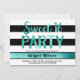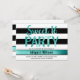 Modern Sweet 16 birthday party invitation with black and white stripes and elegant teal blue faux foil calligraphy font.